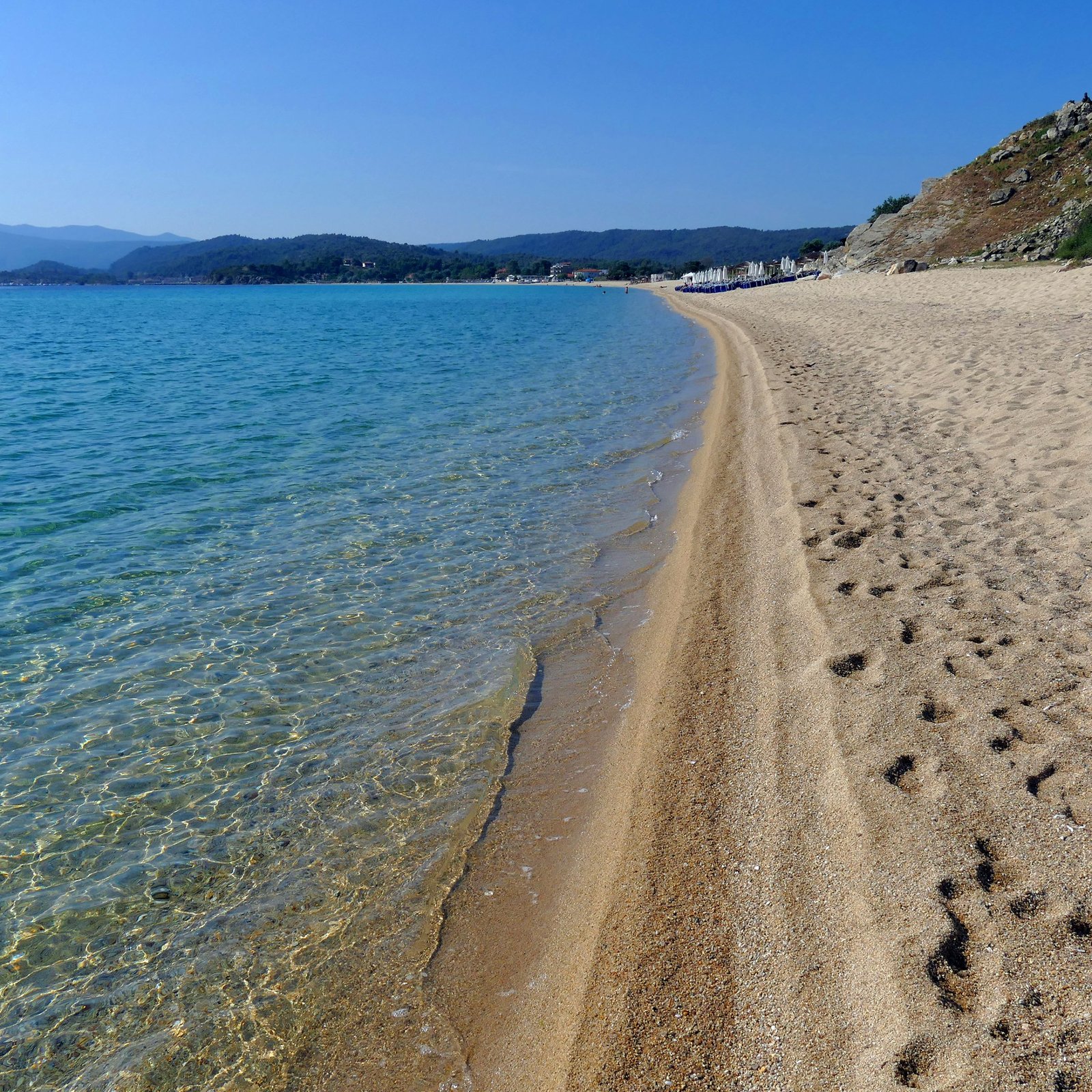Of the three legs the first (Kassandra) and the second leg (Sithonia) are where the most noteworthy beaches are located (the third leg is where Mount Athos is located).